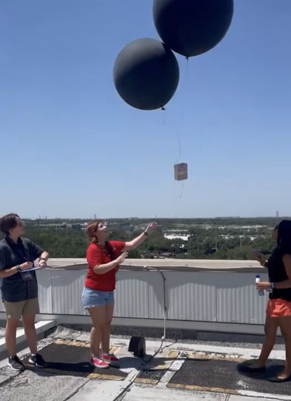 During my NASA Scientific Enhancement in Earth Sciences (SEES) Internship, I helped organize and deploy high-altitude balloons (HABs) to collect upper atmospheric data in Texas. The HAB system consisted of two large helium-inflated balloons attached to a foam-insulated payload that carried instruments including an altimeter, thermometer, pressure and humidity sensors, a CO2 sensor, and GPS. At a predetermined altitude, a remote release trigger separated the payload from the balloons for recovery.