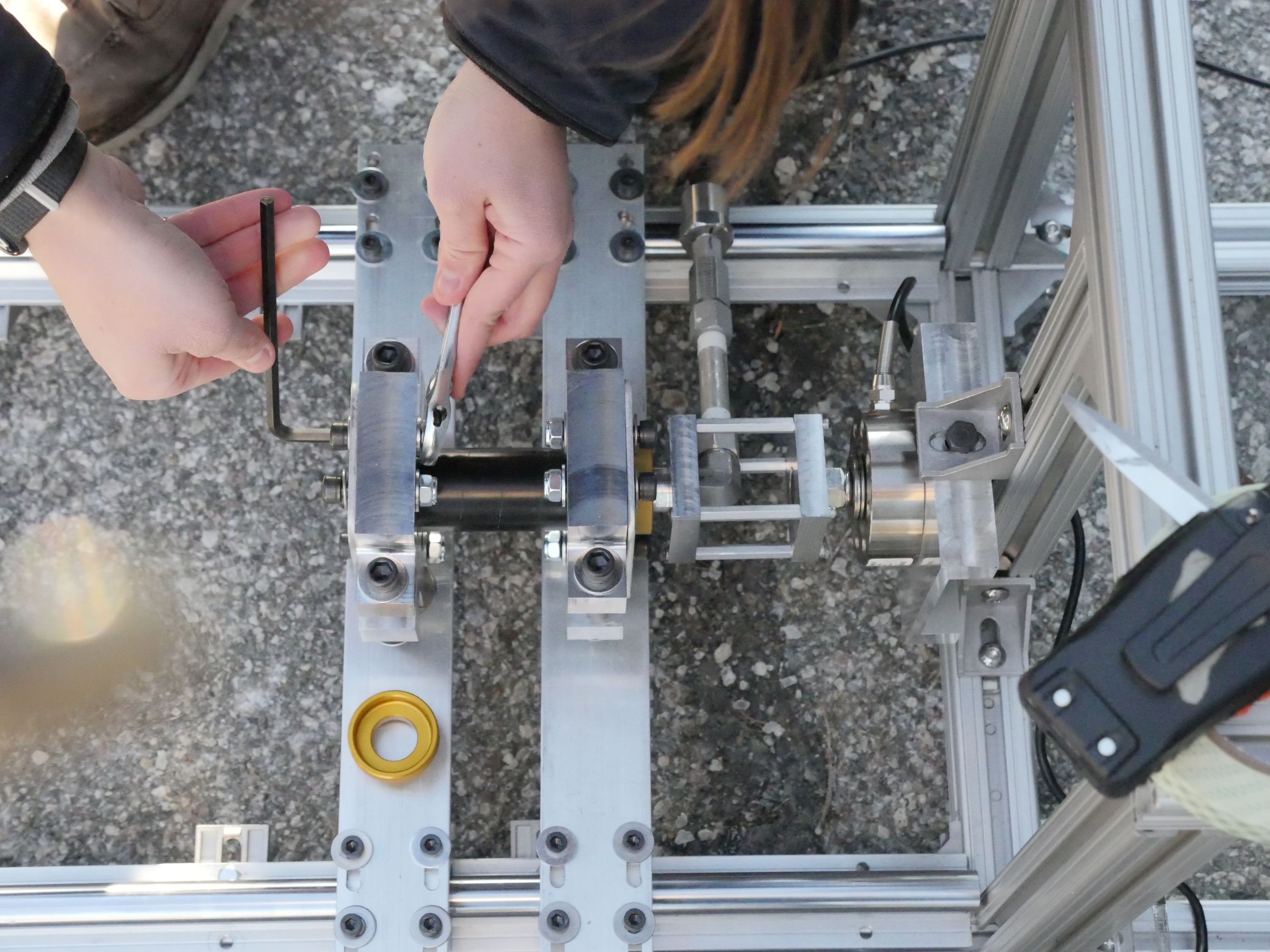 In Fall 2024, I designed the mechanical structure of an adjustable horizontal engine thrust test stand capable of testing motors ranging from 29 mm to 80 mm in diameter. I performed hand calculations to evaluate the structural integrity and ensure the frame could safely withstand the expected thrust loads.